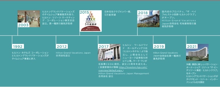 下記はHGVCが日本に進出して以降の年表です(写真をクリックすると拡大します)。
