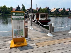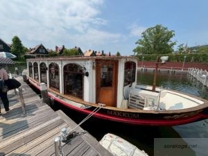 有難いのが、宿泊者特典として利用出来るカナルクルーザーサービス。カフェ「カメリア」のすぐ外から出航するボートで、水路を通ってハウステンボス内部のタワーシティ乗り場まで向かいます(利用にはハウステンボスのチケットが必要です)。