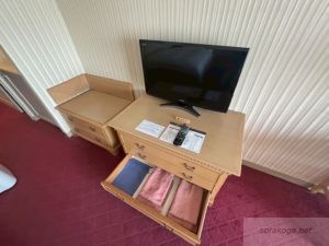 テレビと荷物置き場。箪笥の中には浴衣が入っていました。