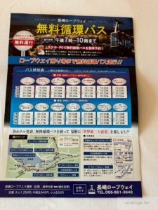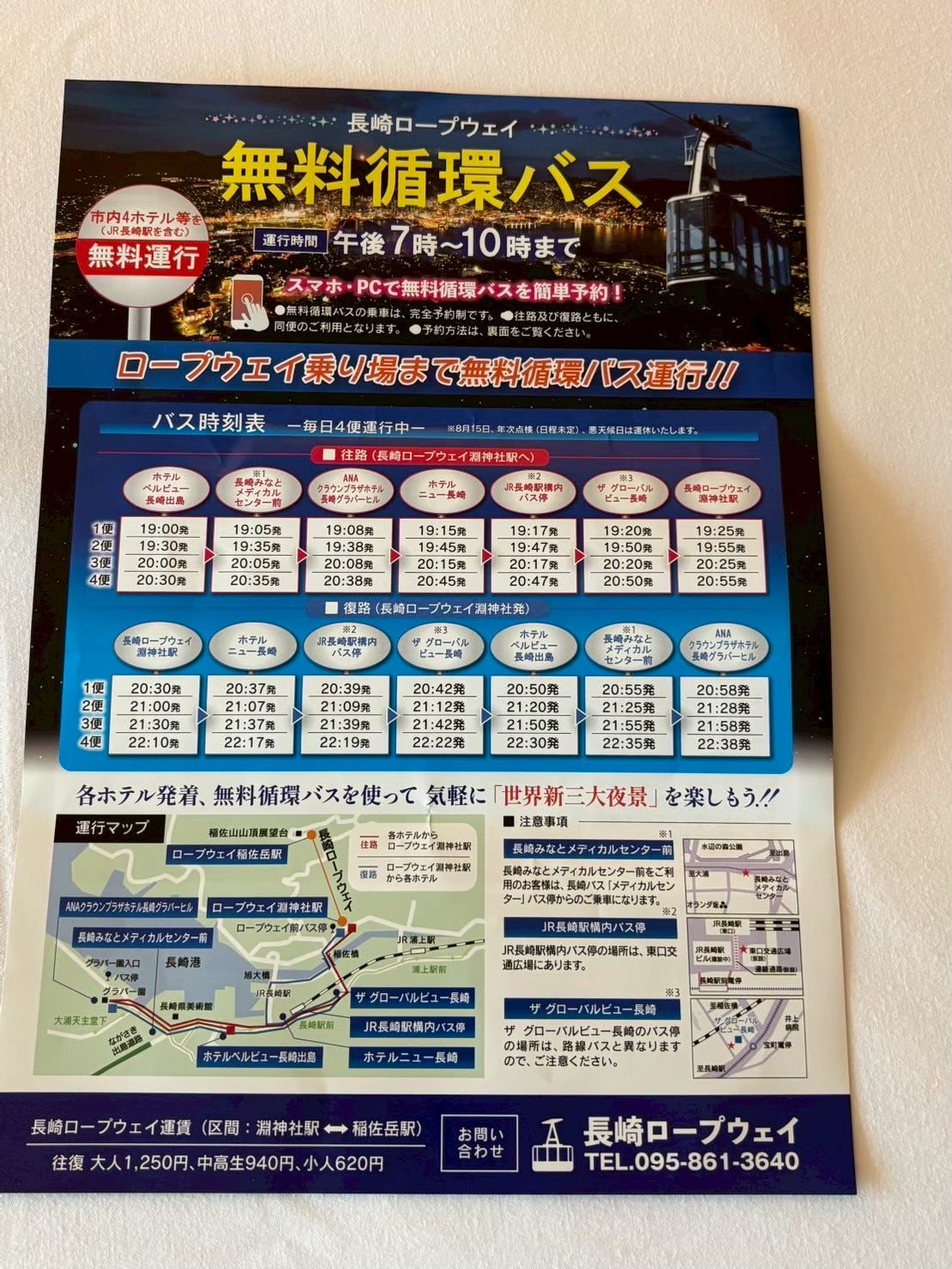 長崎駅前から、ロープウェイふもとまでは無料循環バスが出ていて、ホテルから乗り口までも徒歩1分のため、気軽に訪れることが可能です。