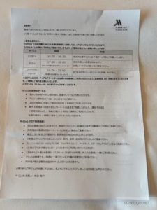 宿泊時に頂いたウェルカムレターも残しておきます(写真をクリックすると拡大します)。