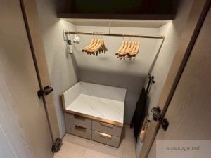 荷物スペースはやや小さめ。もっとも、駅前に位置するシティホテルなので、長期滞在が前提ではないのでこのくらいでも十分かもしれませんね。