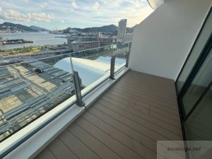 ありがたいのがこのバルコニースペース。高い建物が少ないのでハーバービューを楽しむことができますし、外の風を楽しむことが出来るのはとても気持ちいいです。