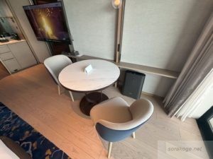 椅子とテーブル。子どもの1名追加もOkでしたが、椅子は2脚しかありません。