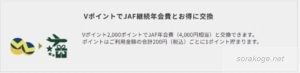 (※)JAF年会費4,000円。Vポイントで支払いが可能で、2,000ptと交換になるのでポイント単価を2円/ptとして利用可能です。